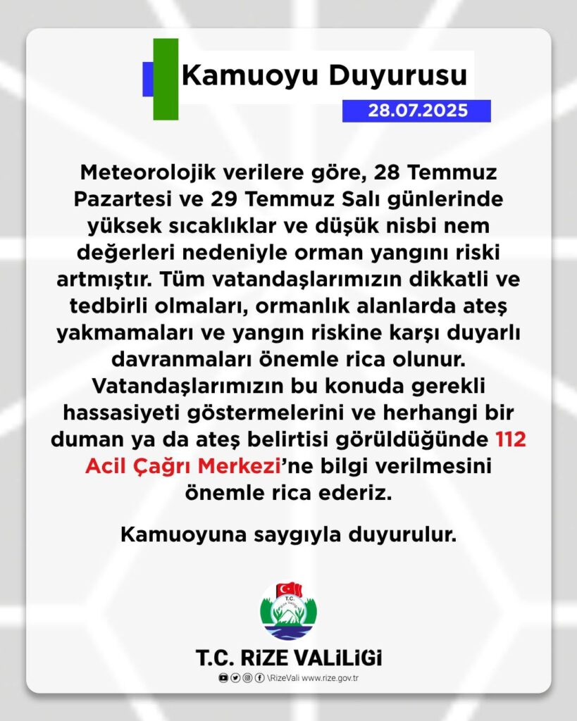 T.C. Rize Valiliği, kamuoyunu saygıyla bilgilendirdi.