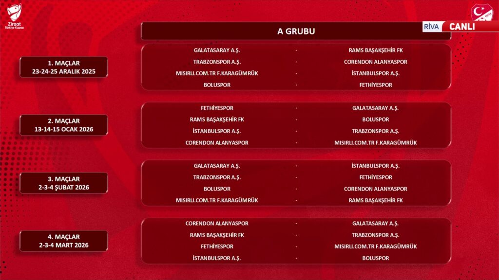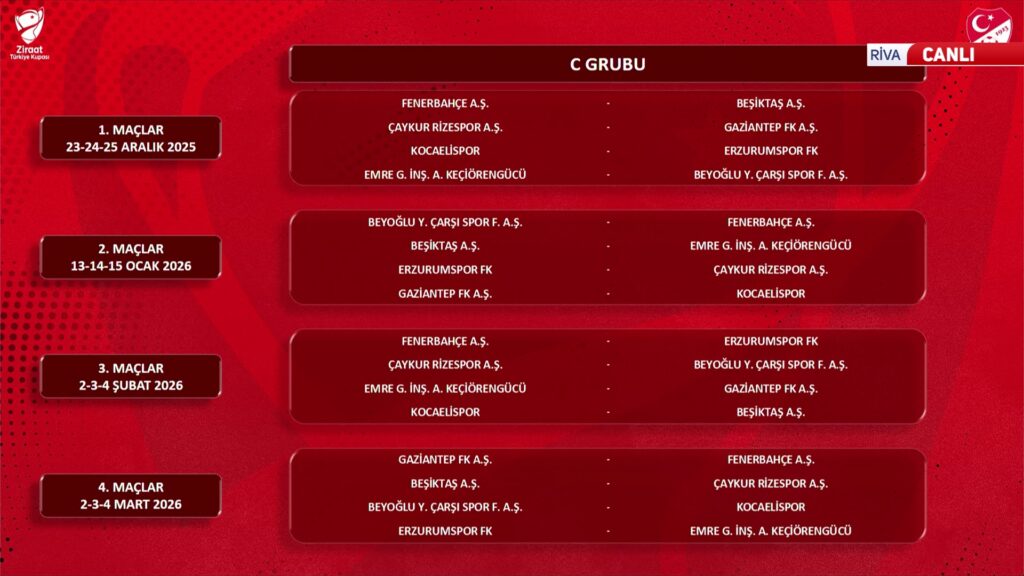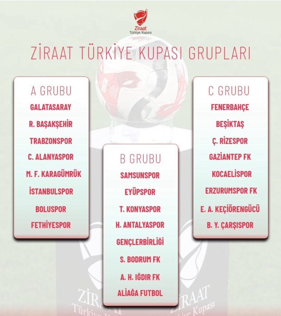 Ziraat Türkiye Kupası’nda grup kuraları çekildi. İlk hafta Fenerbahçe – Beşiktaş derbisi oynanacak.